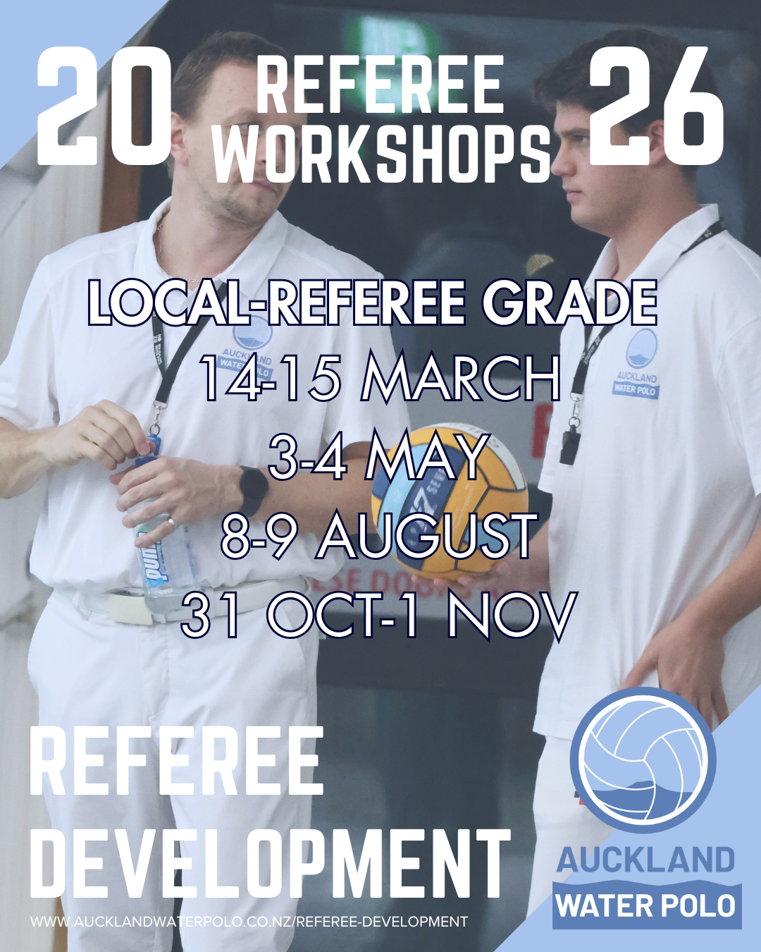 For more information on the AWP Referee Development Pathway, please follow this link: https://www.aucklandwaterpolo.co.nz/refereeing